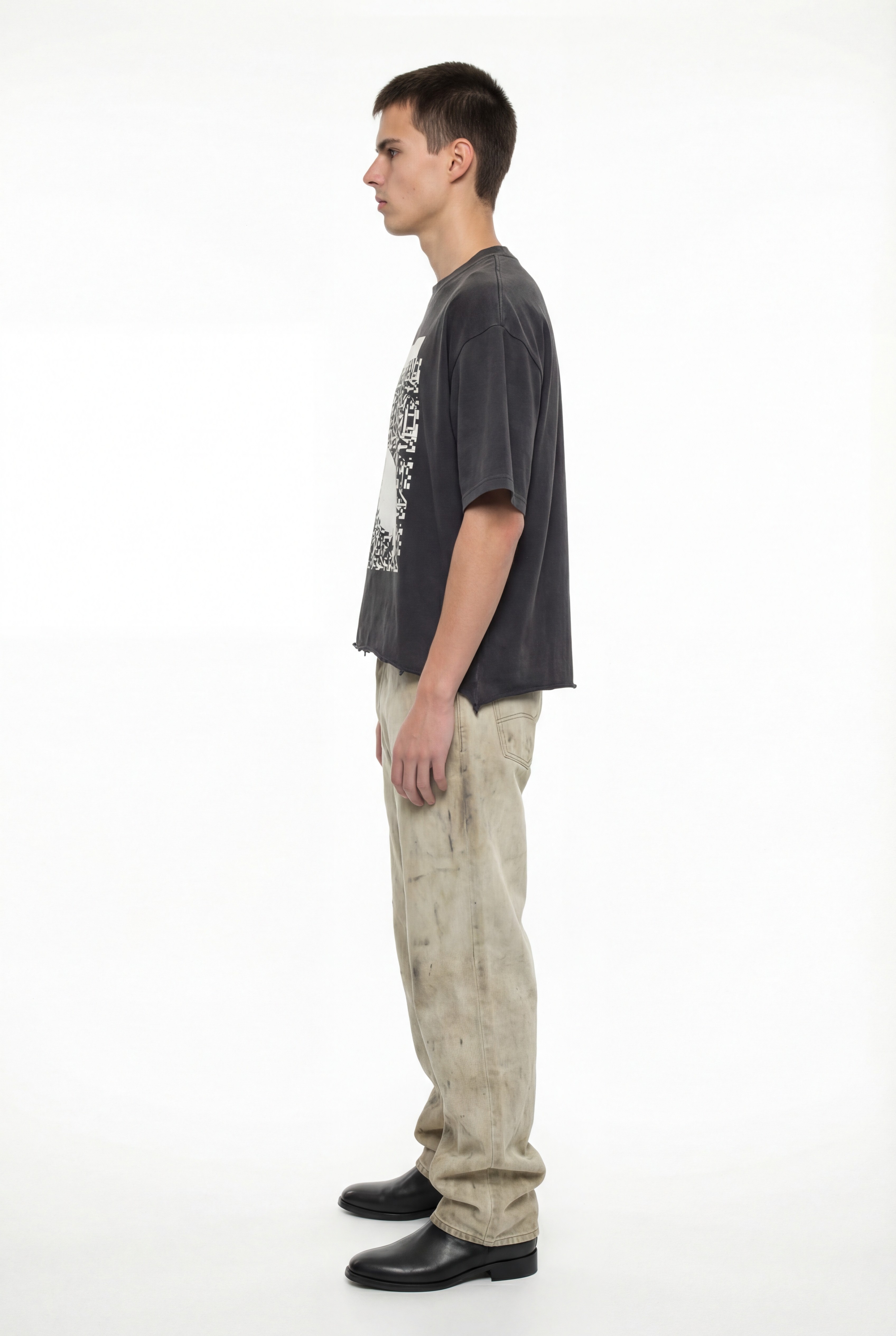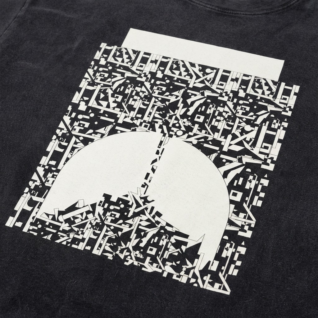 A rugged, deconstructed black t-shirt designed around time, finitude, and attention.